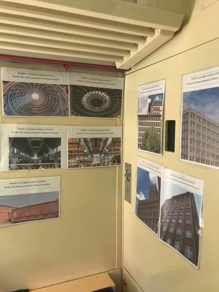 Im Kulturzug / Pociąg do kultury nach Breslau unser “Memory der Moderne”. Findet die Paare, Berlin und Breslau. Kuriose Gemeinsamkeiten: Stil, Architekten, Funktion…und das Breslauer “Bauhaus vor dem Bauhaus”. War ein großer Spaß!